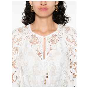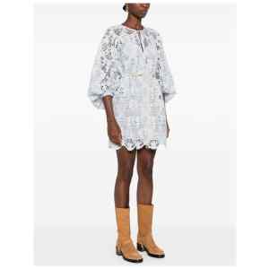 Zimmermann’s designs are instantly recognizable, featuring voluminous linen dresses, embroidered blouses, ruffled skirts, structured blazers, and signature floral prints. The brand’s use of texture and proportion, from lace inserts to tiered silhouettes, creates a poetic interplay between softness and strength.