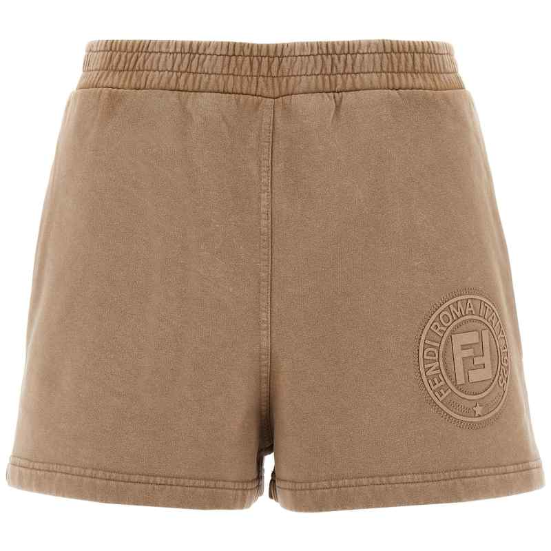 Vintage effect cotton shorts, 3d ‘fendi roma’ embroidery on the front, Elastic waistband, Pockets. Size and Fit – True to size fit