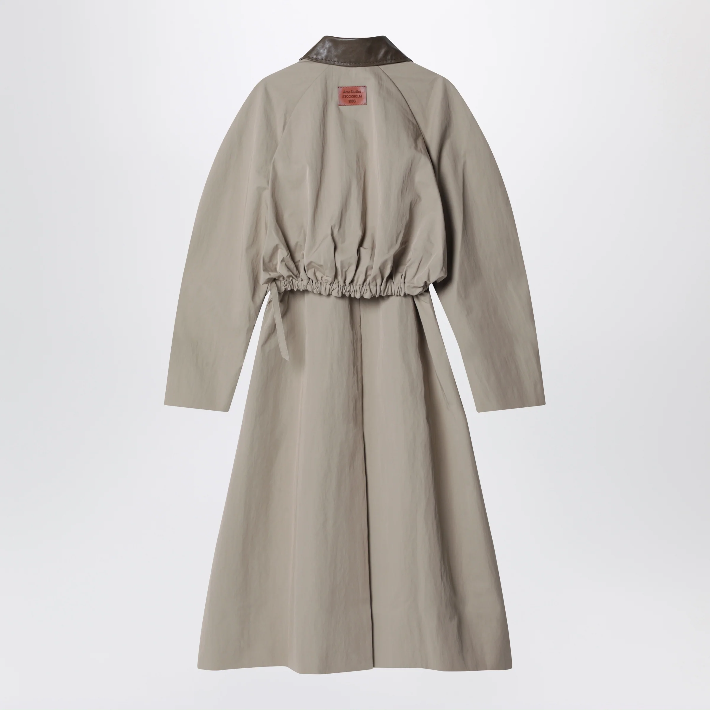 Trenchcoat by Acne Stidios crafted from technical cotton with a contrasting leather collar