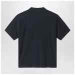 Black cotton polo shirt by Acne Studios with a distressed finish, featuring short sleeves, buttons down the front, a relaxed fit and contrasting logo embroidery on the chest.