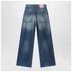 Wide-leg jeans by Acne Studios in faded blue cotton denim, with front zip and button closure, belt loops at the waist, five classic pockets, distressed details with splashes and logo patch on the back.