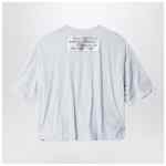 T-shirt by Acne Studios in grey melange organic cotton, featuring crewneck, relaxed fit, below-hip length, voluminous gathered sleeves and hem and large seasonal logo label.