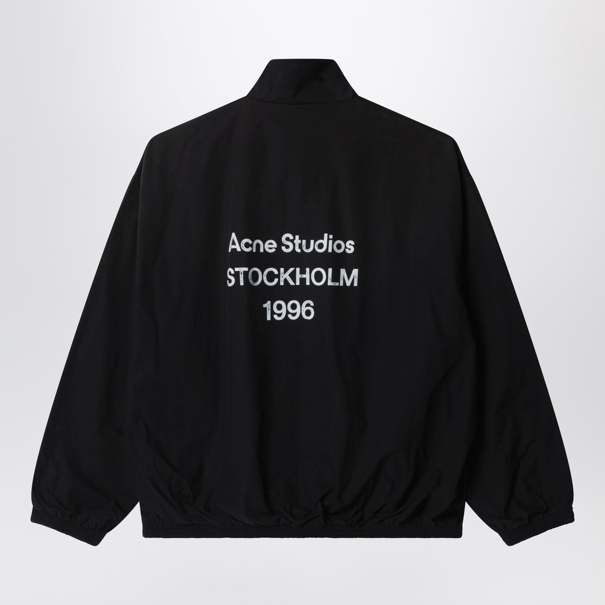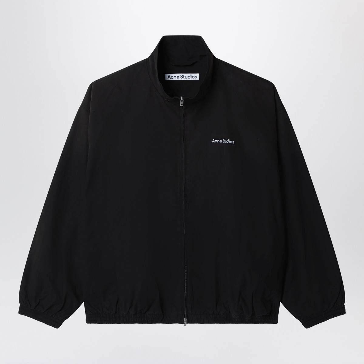 Bomber jacket by Acne Studios crafted from a lightweight cotton poplin with a washed finish, feauturing relaxed fit, hip lenght, a centre zipper closure, side seam pockets, and elasticated cuffs and hem and contrast Acne Studios 1996 stamp logo on the back.