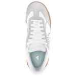 white/multicolour shell panelled design logo print to the side contrasting branded heel counter round toe front lace-up fastening branded insole signature cushioned Boost midsole flat rubber sole Court Boost sneakers