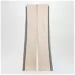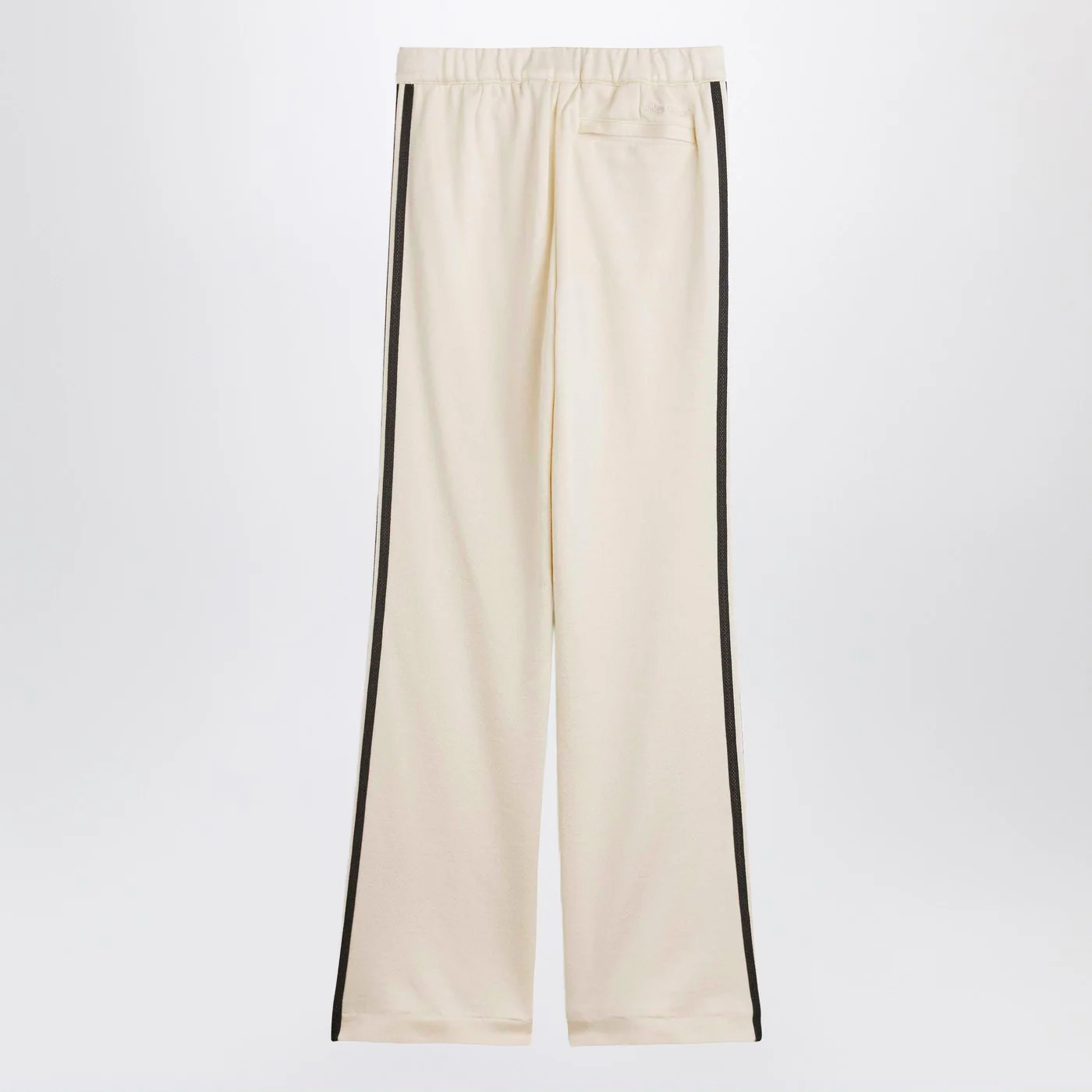 Cream cotton blend jogging trousers by adidas Originals in collaboration with Wales Bonner featuring partially elastic waistband zip and hook closure one zip pocket at back contrasting side stripes tonal embroidered logo on front and back and pressed central pleats.
