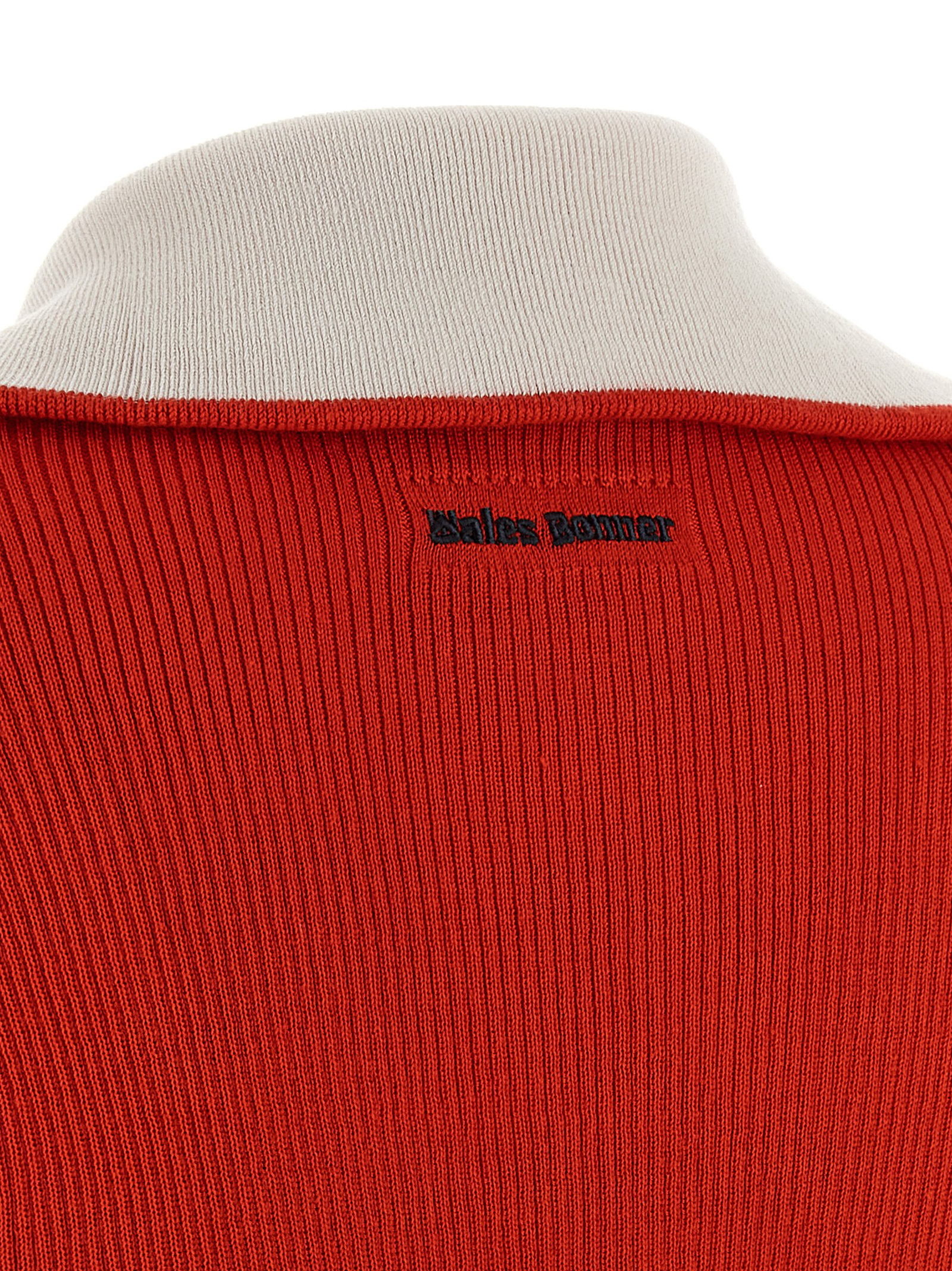 Adidas Originals by Wales Bonner ‘WB Track’ sweatshirt in acrylic knit and contrasting center detailing, embroidered logo on the front and back, high collar, front zip closure, pockets, and long sleeves.