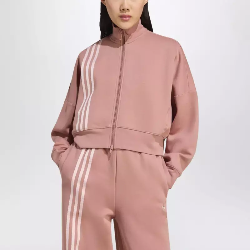 adidas Originals Off Placed 3-Stripes zip sweatshirt pink