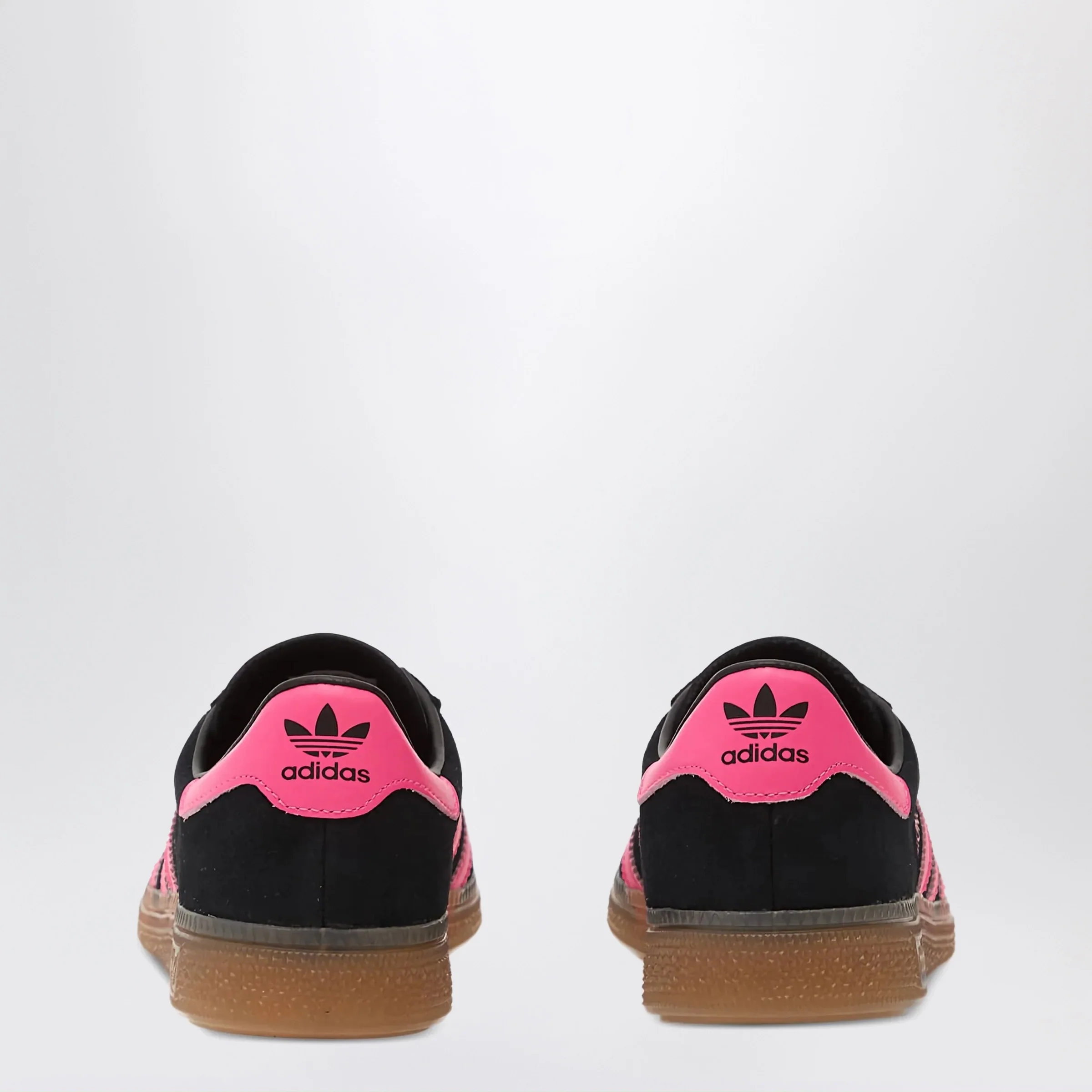 Sneaker by adidas Originals in black suede featuring neon yellow side stripes lace-up closure embossed logo on the tongue and heel and rubber sole.