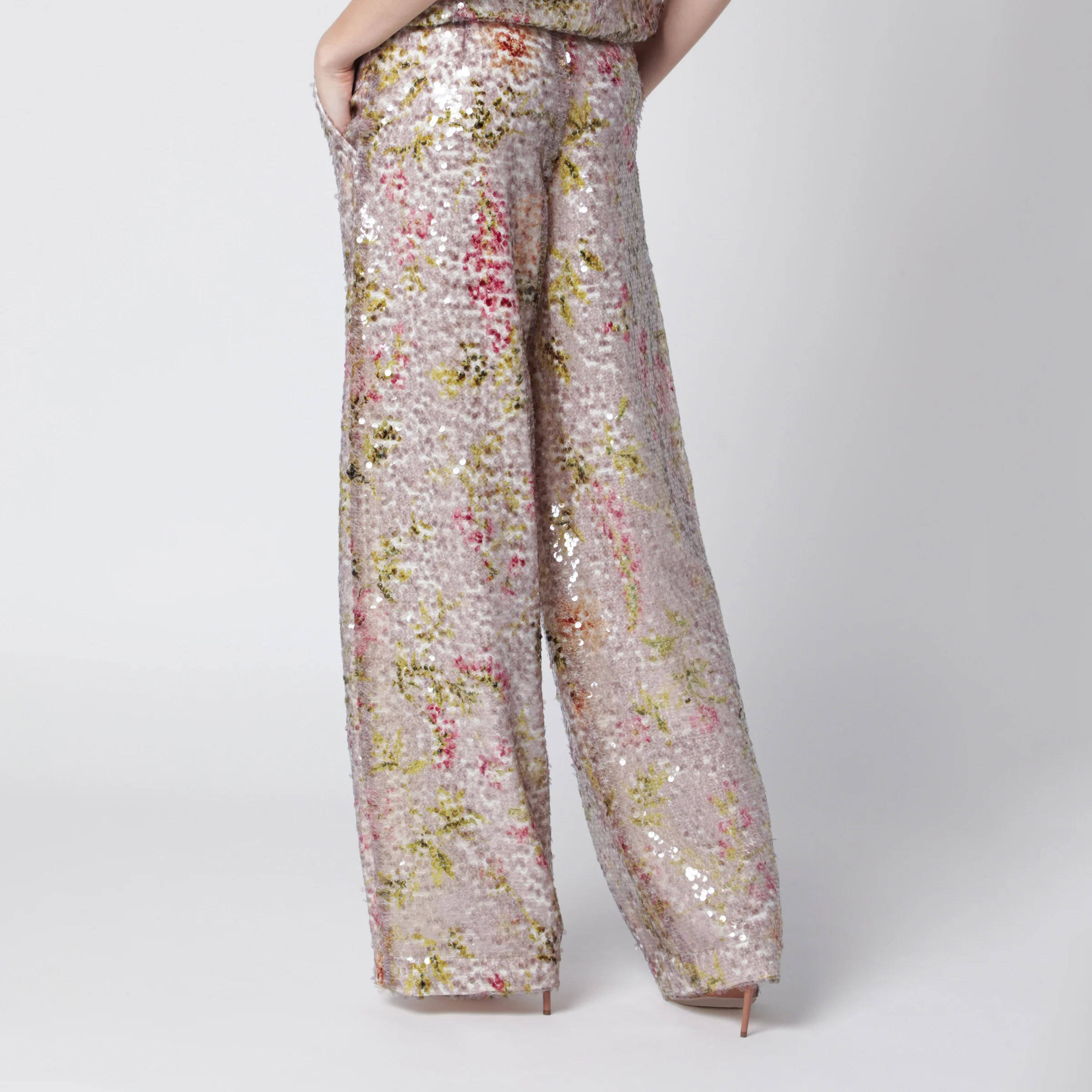 Alberta Ferretti Sequin trousers with floral pattern