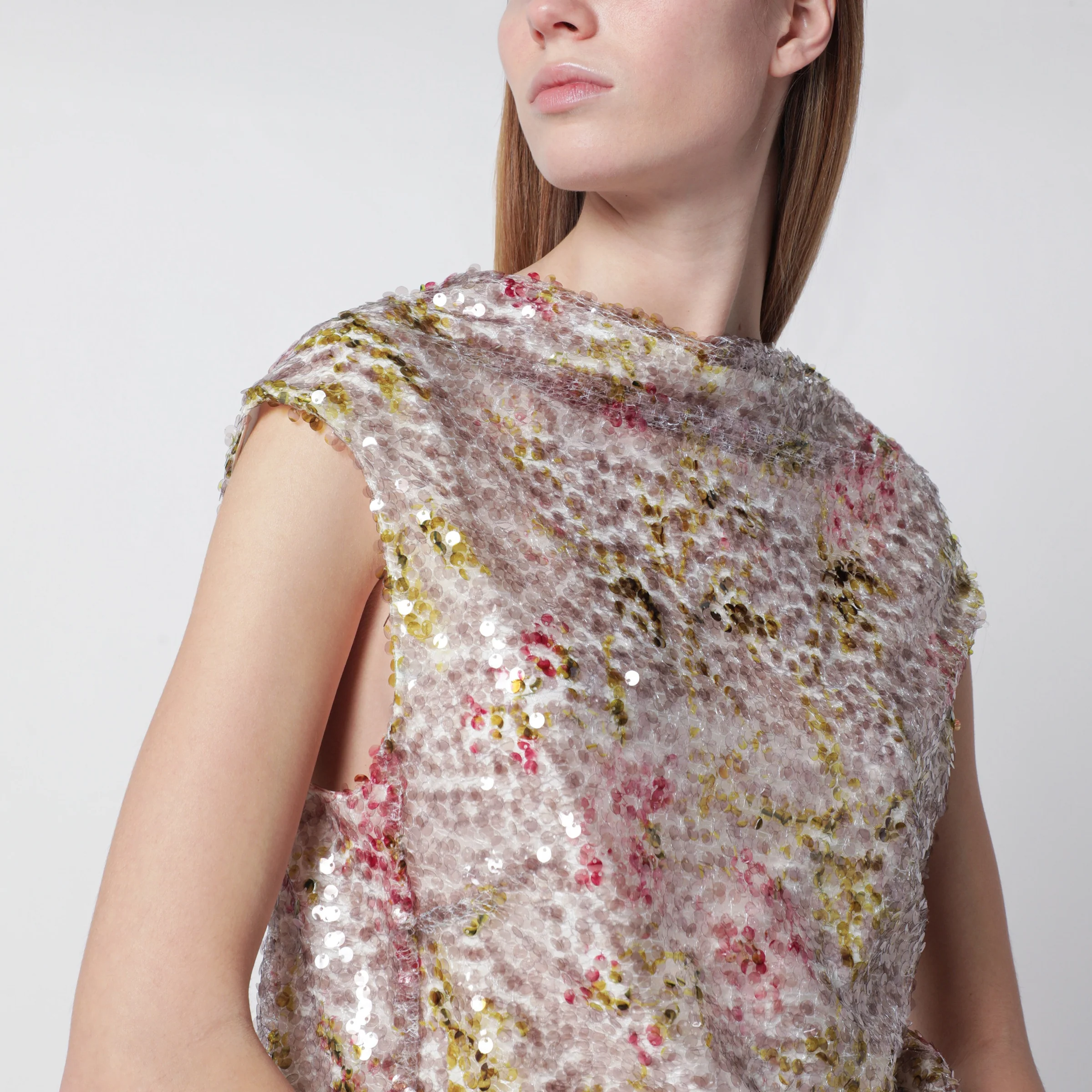 Alberta Ferretti Sleeveless high-neck top with a floral sequin pattern