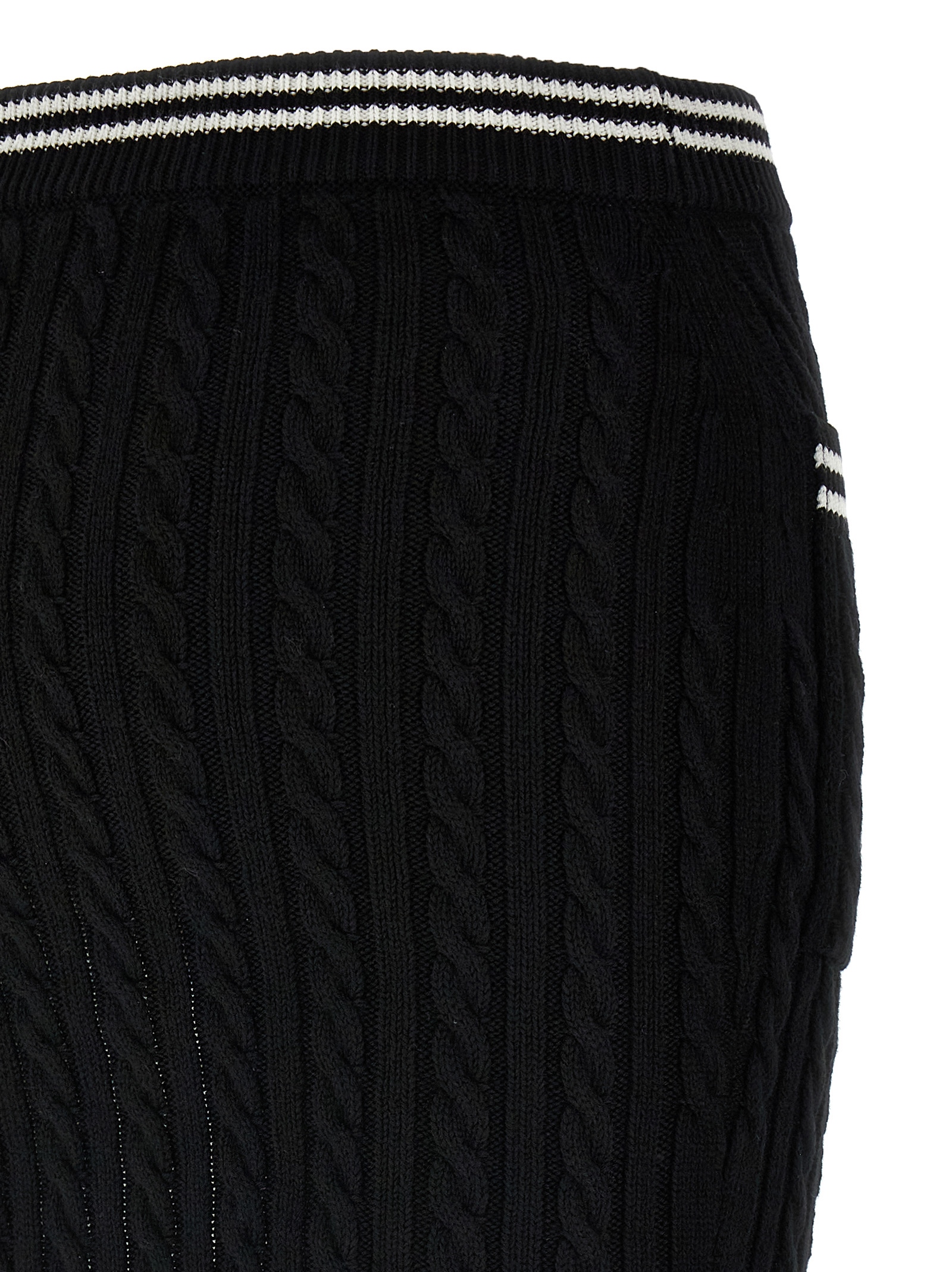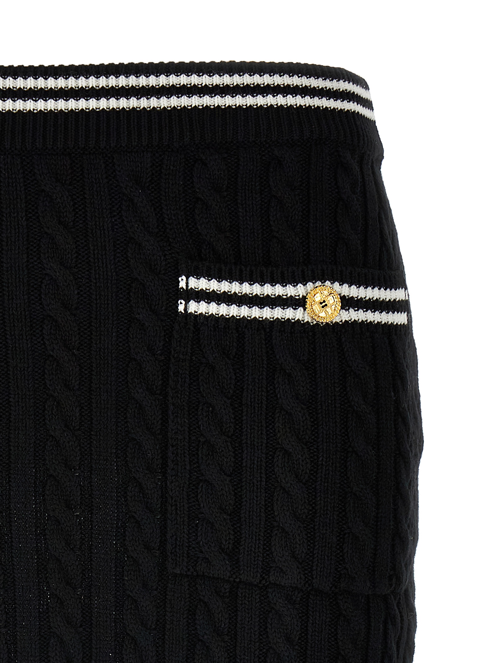 Braided cotton mini skirt with contrast details, elastic waistband, pockets.