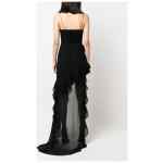 velluto, scollo profondo, fibbia in cristallo Ruffles detail silk georgette evening dress