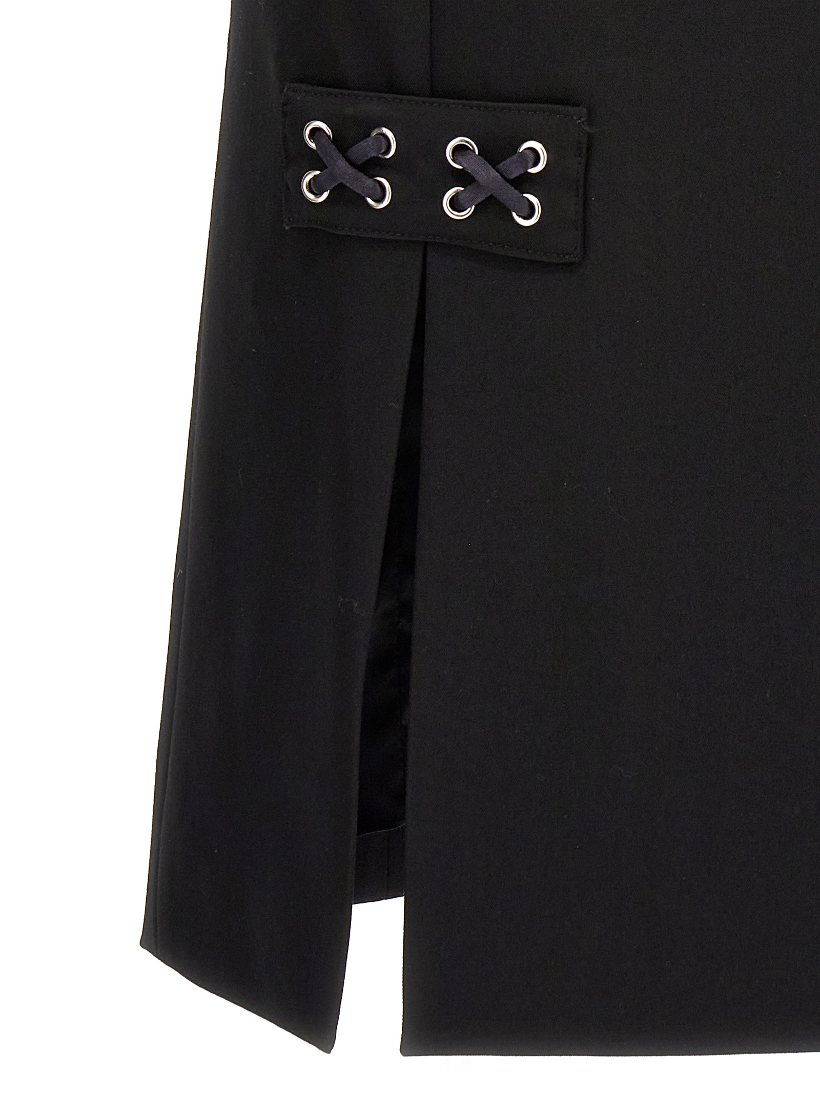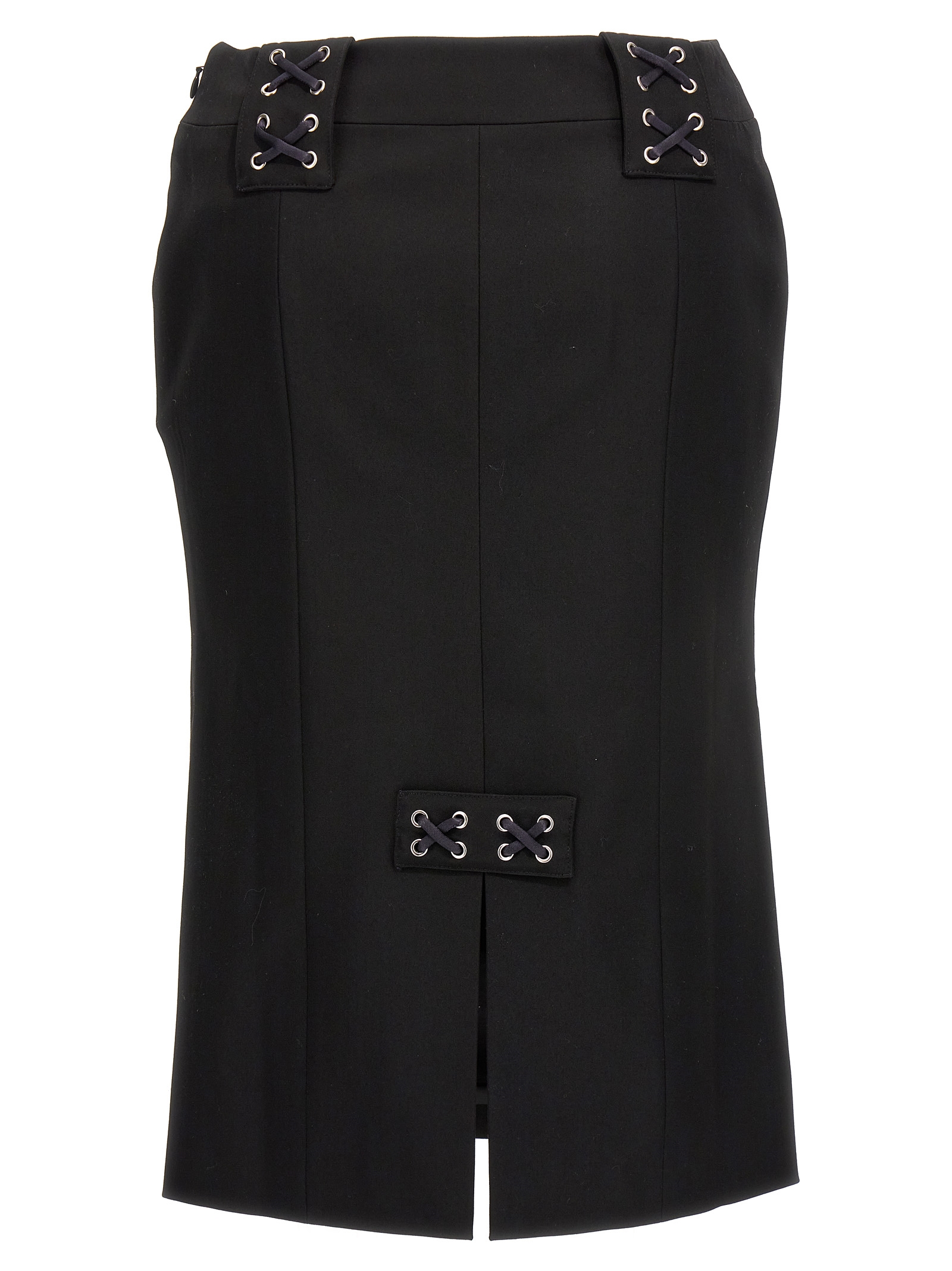 Wool blend skirt with lace detail, side zip closure, back slit and front splits.