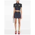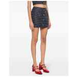 navy blue/white tweed metallic threading decorative button detailing thigh-length full lining straight hem concealed side hook and zip fastening Sequin checked tweed mini skirt