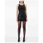 anthracite grey cotton fine ribbed appliqué logo round neck sleeveless straight hem Logo ribbed cotton tank top
