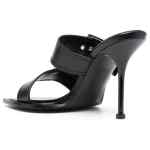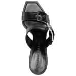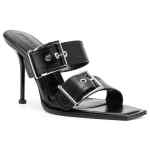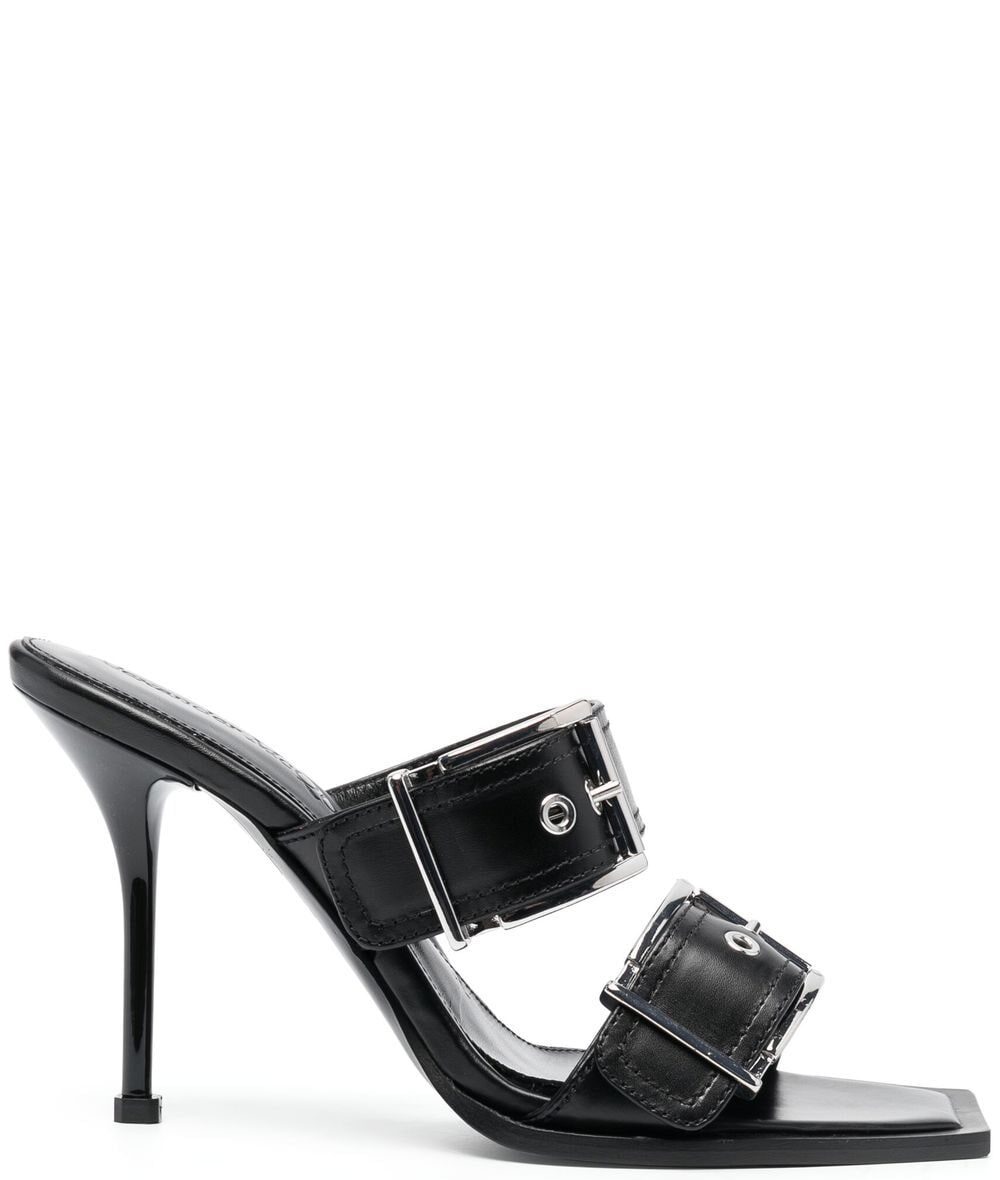 buckle-detail sandals from Alexander McQueen featuring black, calf leather, buckle detail at the toe, branded insole, high stiletto heel and square toe. Punk double buckle leather sandals