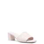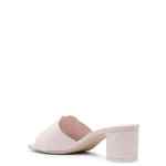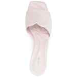 light pink calf leather smooth grain signature Seal embellishment logo at the sole square open toe branded leather insole mid block heel leather outsole slip-on style Seal leather mules