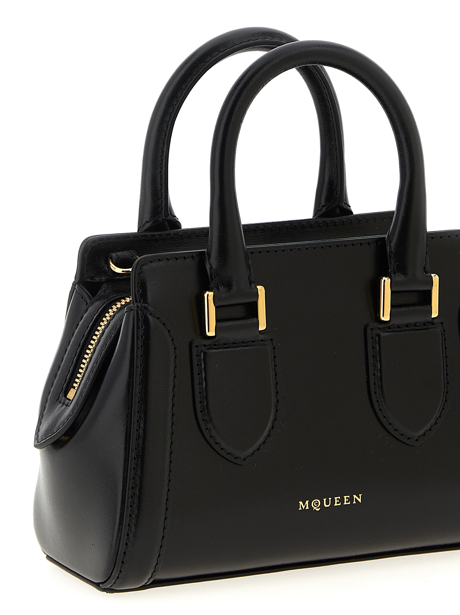 ‘birdee’ smooth calf leather mini handbag with front embossed logo, Double fixed handle, Top zip closure, Adjustable and removable shoulder strap.