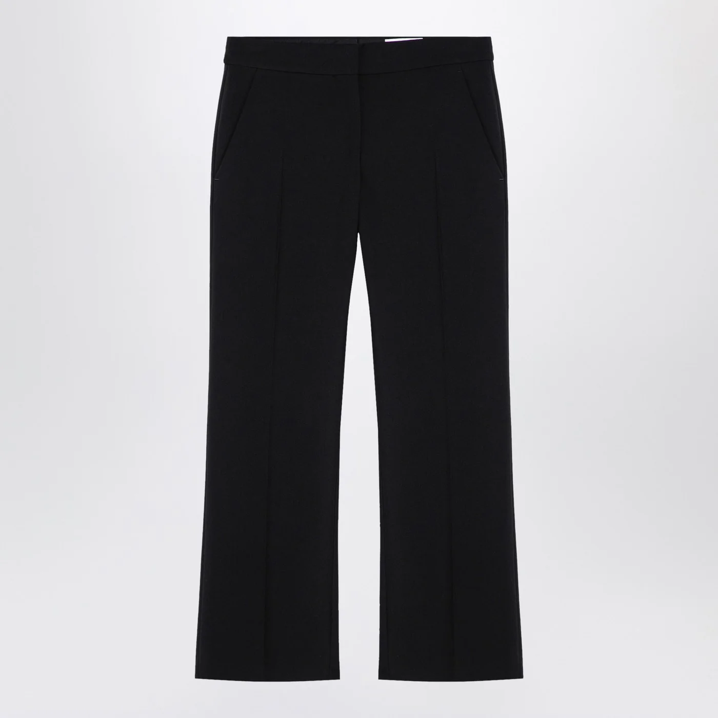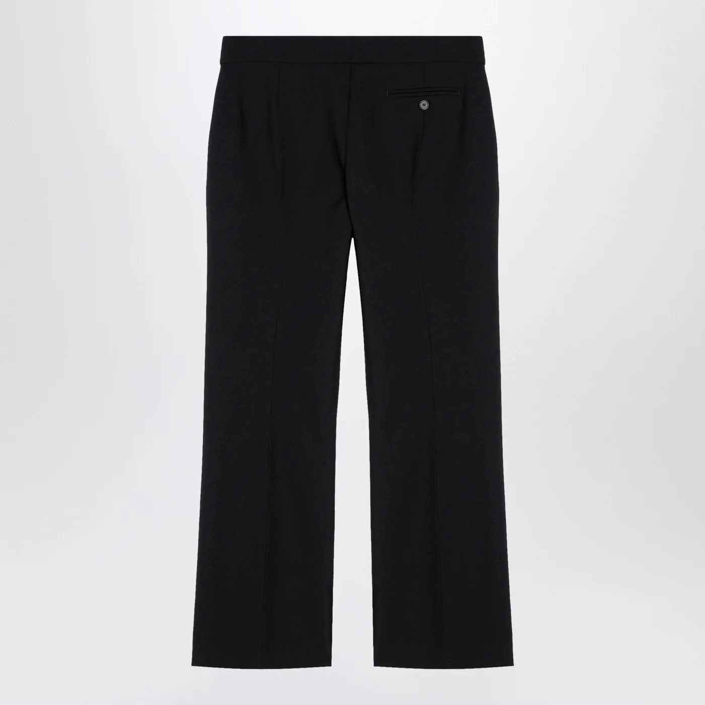 Tailored trousers by Alexander McQueen in black wool featuring a cropped design a mid-rise waist a hook-and-eye fastening side welt pockets and a back welt pocket.