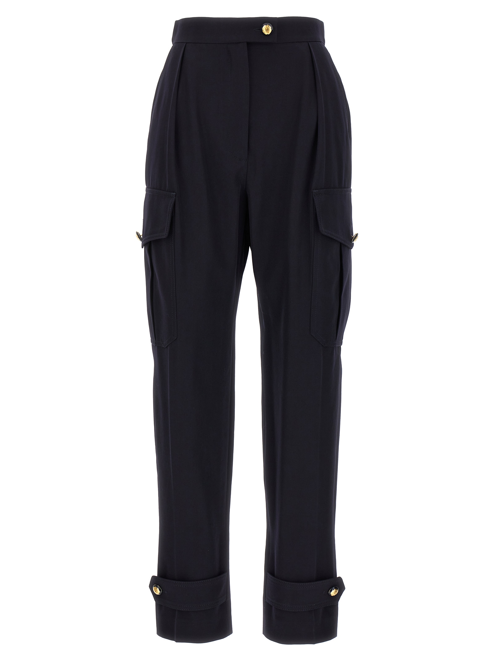 Cargo pants in wool and cotton blend, Zip and button closure, Pockets.