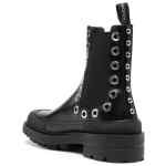 eyelet-detail Chelsea boots from Alexander McQueen featuring jet black, silver-tone hardware, metal eyelet detailing, logo pull-tab at the heel, elasticated side panels, round toe, chunky rubber sole and pull-on style. Tread Slick leather chelsea boots