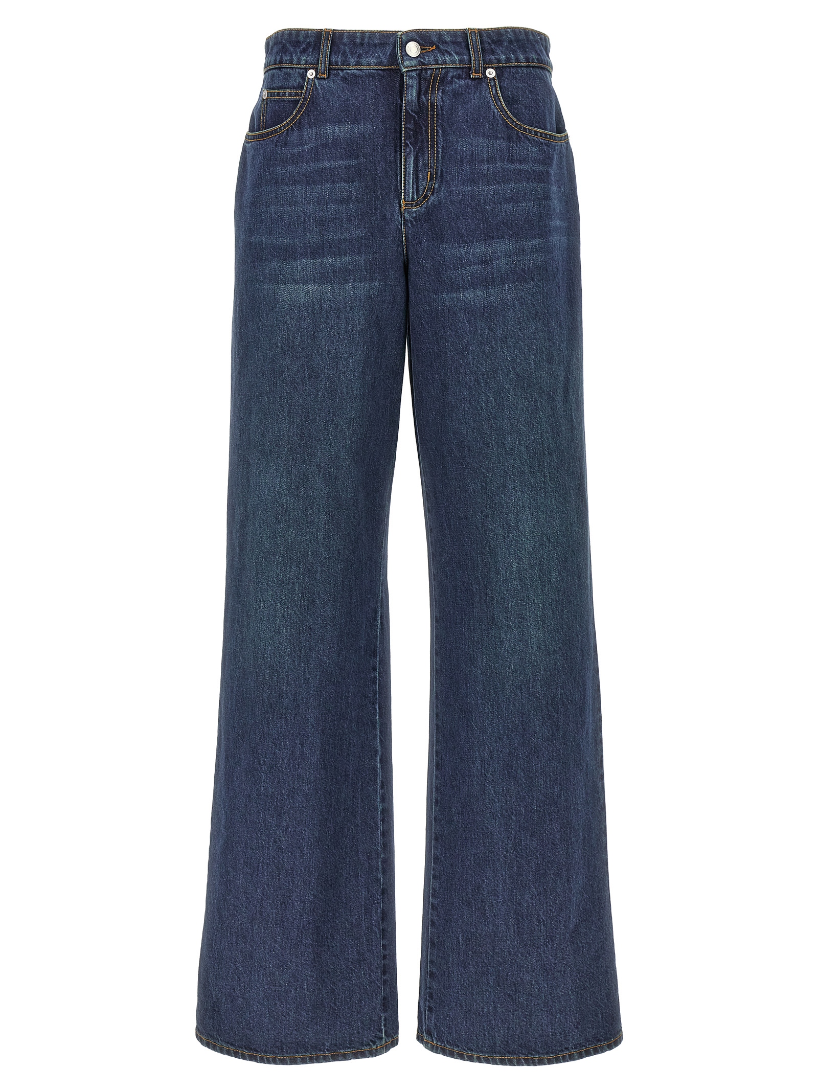 Indigo cotton denim jeans, Zip and button closure, Five pockets, Leather logo tag.
