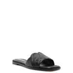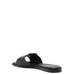 black calf leather smooth grain logo-embossed strap logo at the sole square open toe branded leather cushioned insole leather outsole slip-on style This piece comes complete with a protective dust bag. Seal leather flat sandals