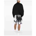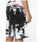 white, black cotton jersey texture paint splatter detail elasticated waistband two side inset pockets embroidered logo to the rear rear zip-fastening pocket internal logo tag thigh-length internal drawstring fastening waist Printed organic cotton shorts