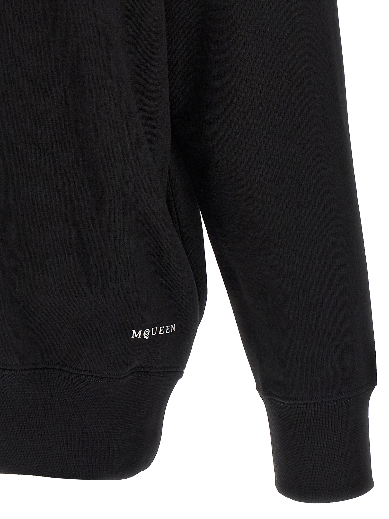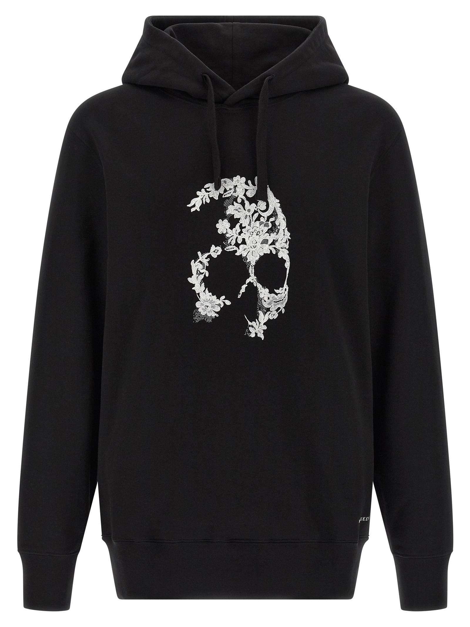 Brushed cotton hoodie with digital lace ‘skull’ print and front logo, Long cuffed sleeves and dropped shoulders.