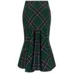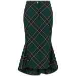 Wool tartan midi skirt, High waist, Flared silhouette with panel construction, Zip and front button closure, Pockets, Asymmetrical hem, Cupro lining. Size and Fit – True to size fit