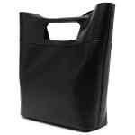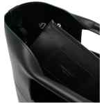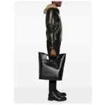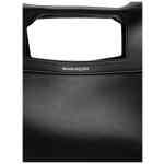 leather logo print tote bag from Alexander McQueen featuring black, calf leather, smoothing finish, stripe detailing, logo print to the front, bow detailing, two top handles, single top handle and main compartment. The Square Bow leather handbag