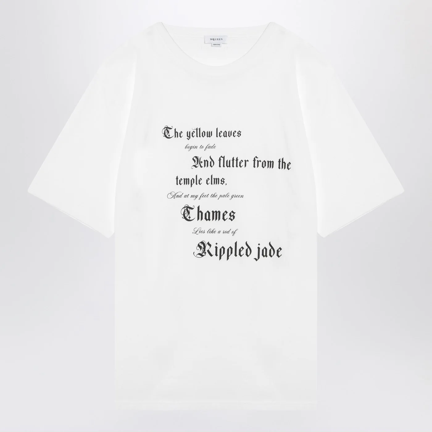 Alexander McQueen white cotton T-shirt featuring short sleeves contrasting print on the front and an oversized fit.