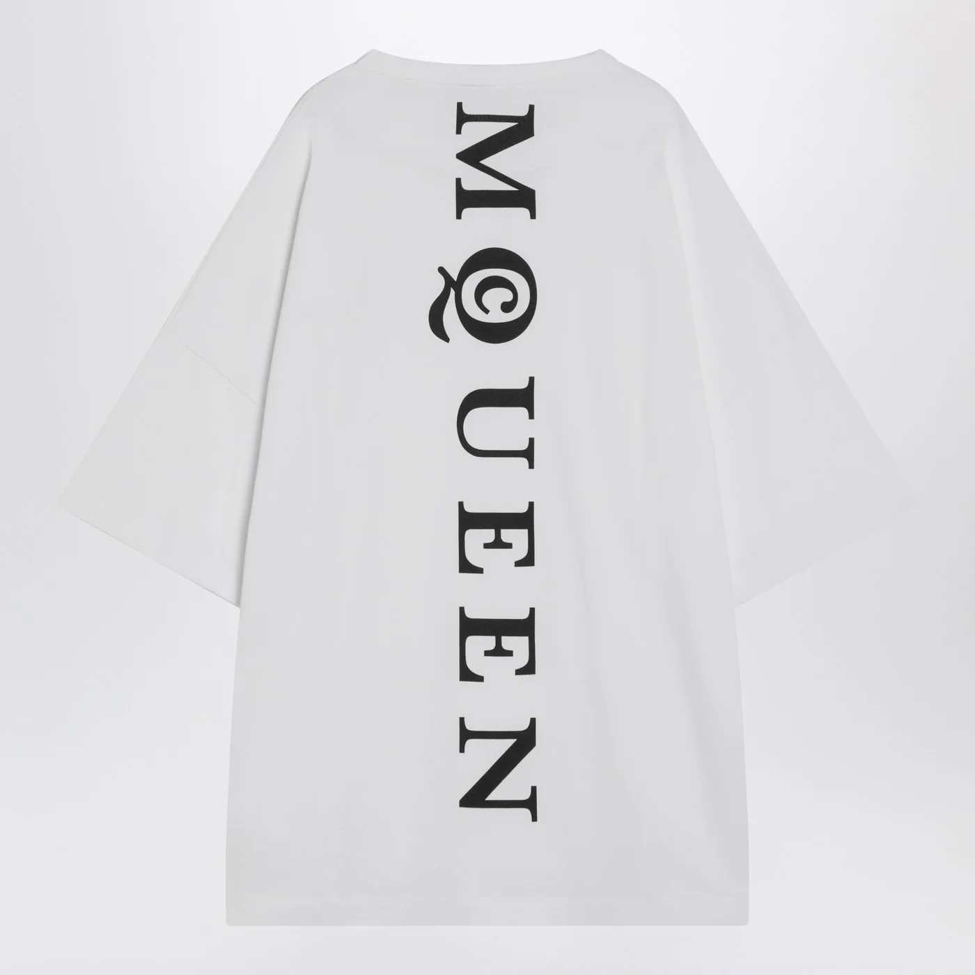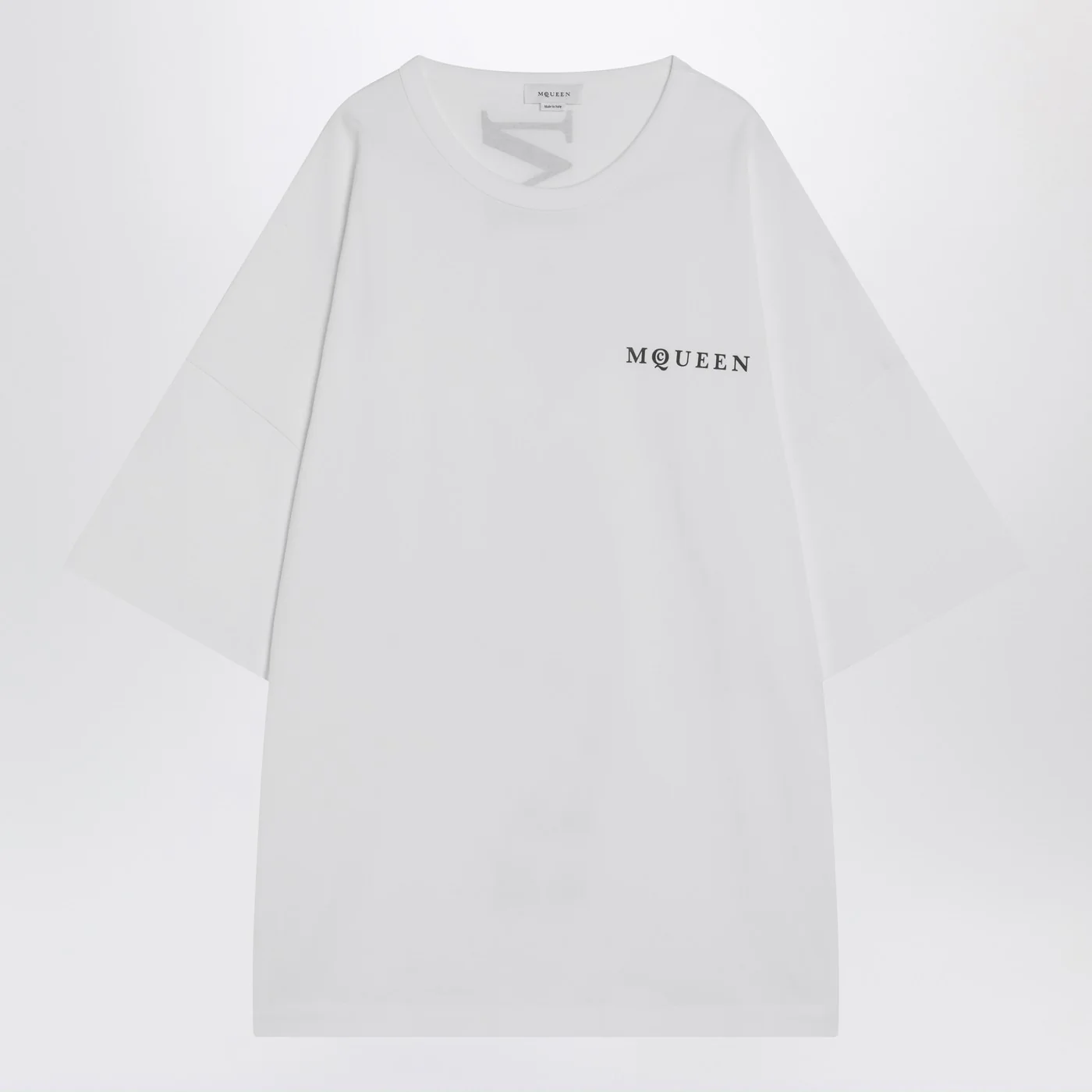 Oversized T-shirt by Alexander McQueen in white cotton featuring logo print on the chest and back short sleeves and straight hem.