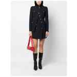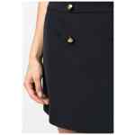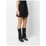 wool-cotton blend mini wrap skirt from Alexander McQueen featuring navy blue, wool-cotton blend, twill weave, wrap design, embossed gold-tone buttons, high waist, front button fastening, straight hem and thigh-length. Wool mini skirt
