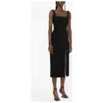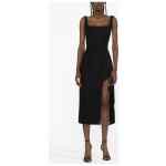 zip-embellished midi dress from Alexander McQueen featuring black, wool, decorative zip detailing, square neck, concealed rear zip fastening, sleeveless, side slit and mid-length. Grain de poudre wool midi dress
