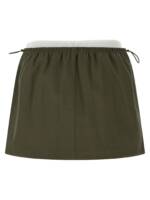 Cotton mini skirt, Double layer waist with contrast logo elastic band insert, Medium waist, Trompe l’oeil flap, Pockets, Drawstring at the waist, Unlined. Size and Fit – True to size fit