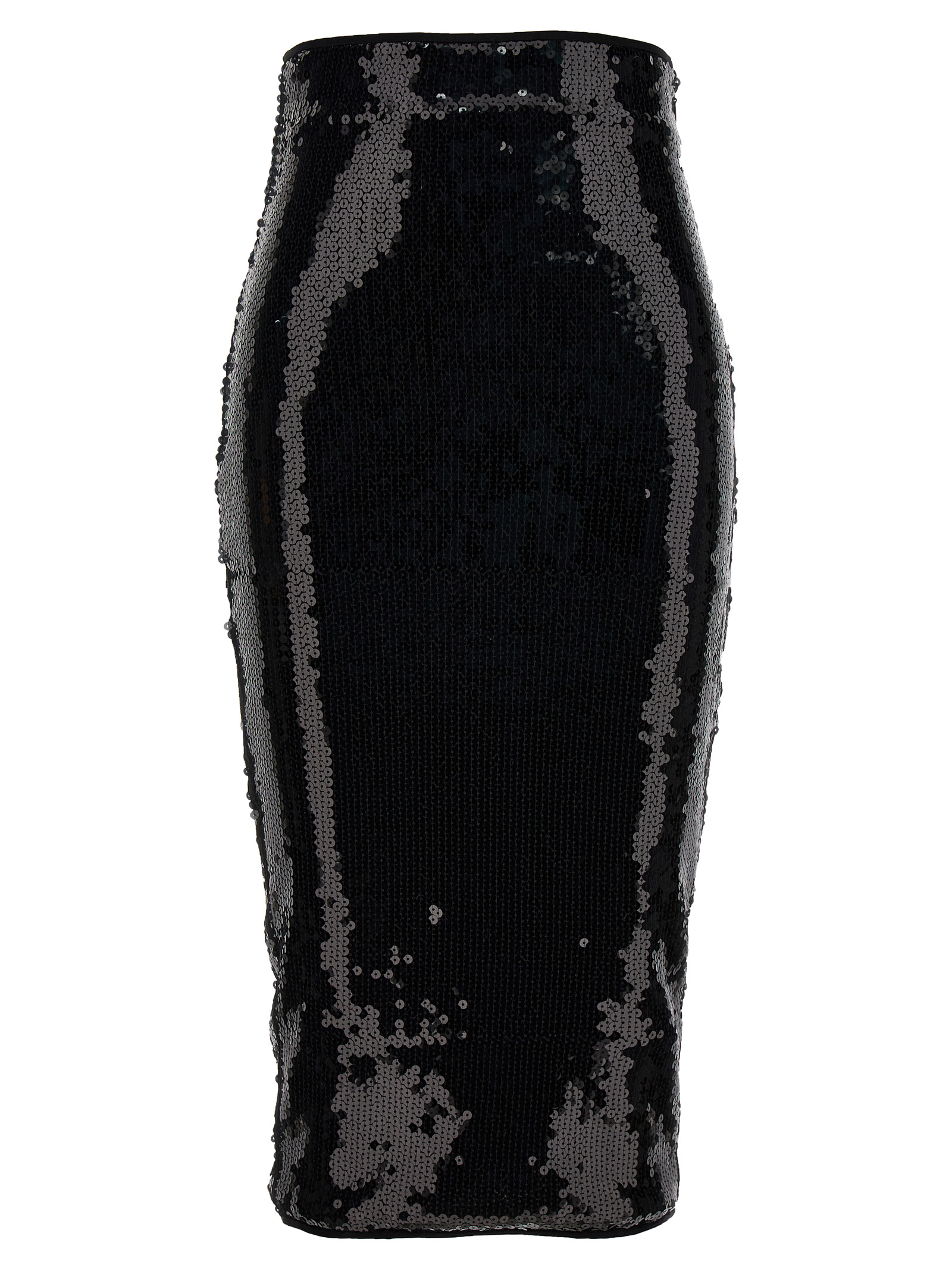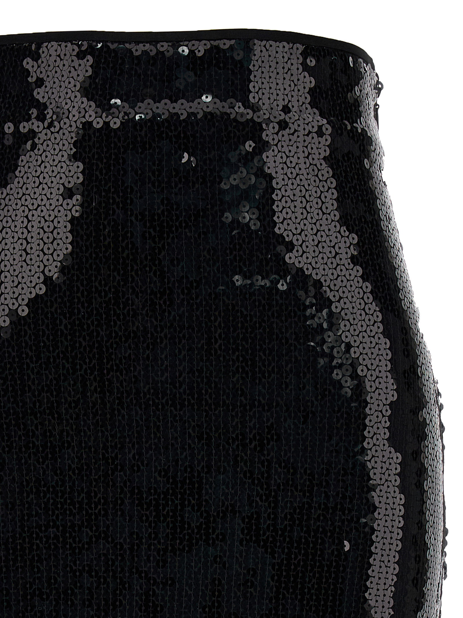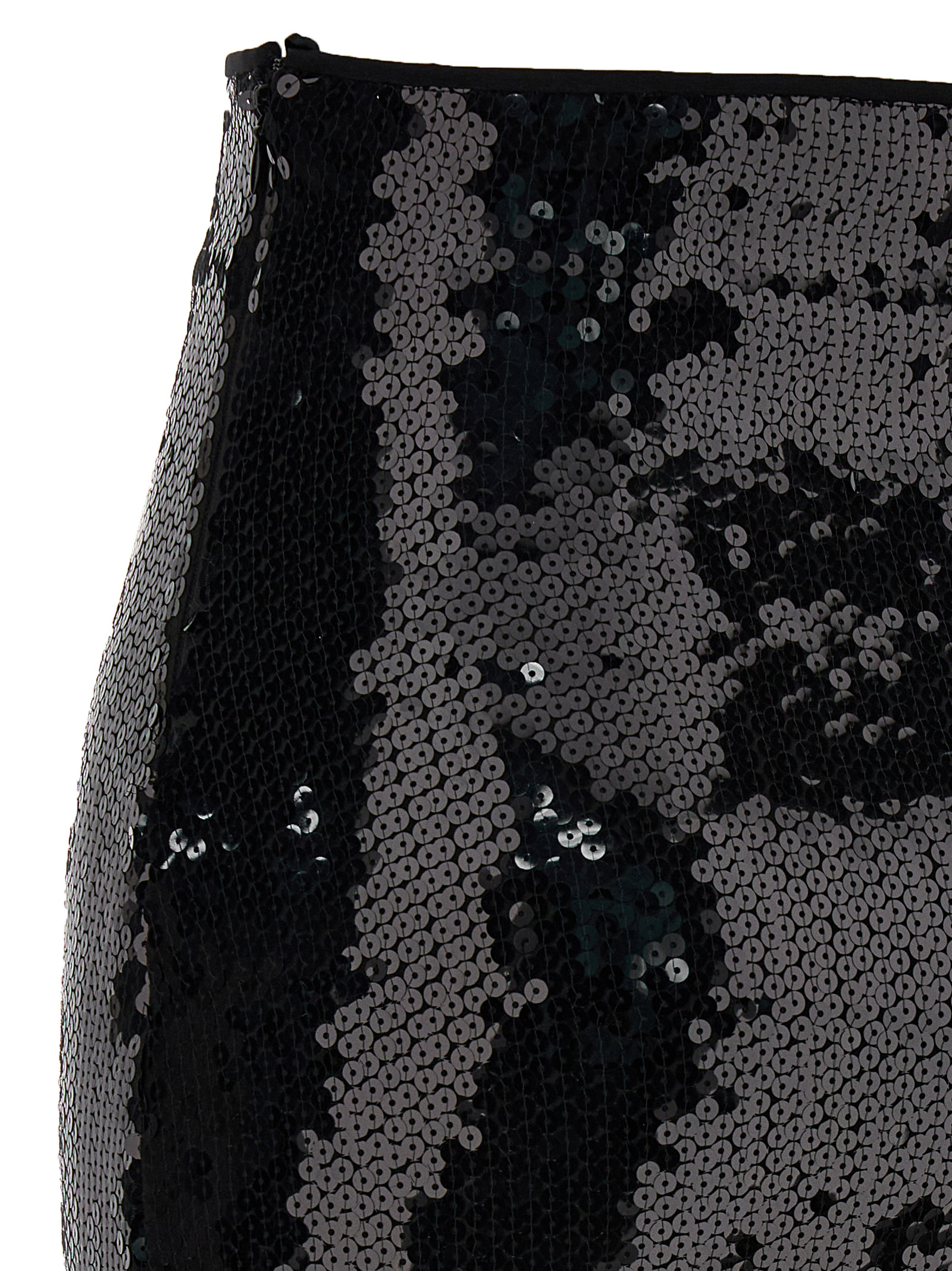 Sequin midi skirt with zip closure.