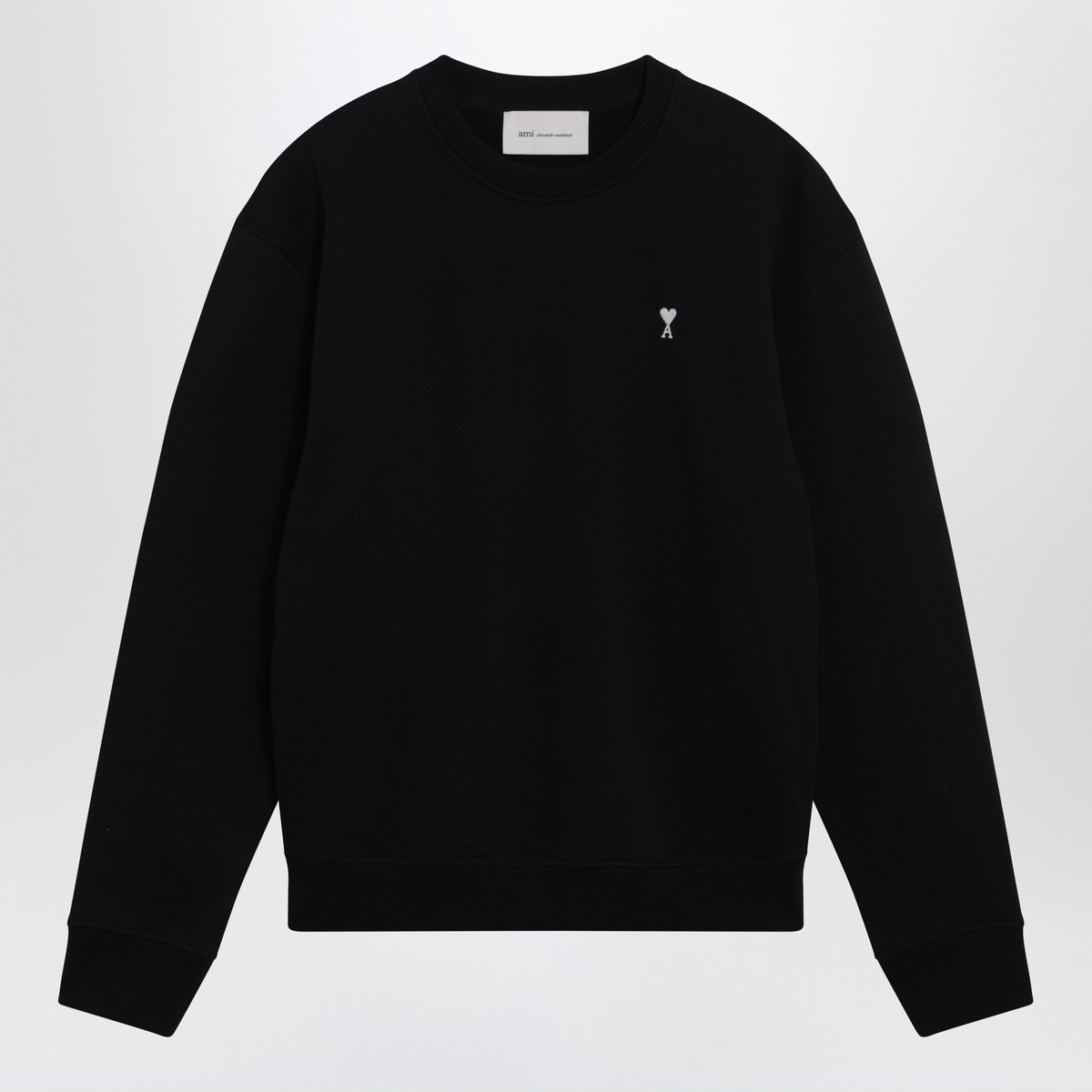 Ami Paris black cotton crewneck sweatshirt, featuring long sleeves, ribbed trims and Ami de Coeur embroidery on the chest.