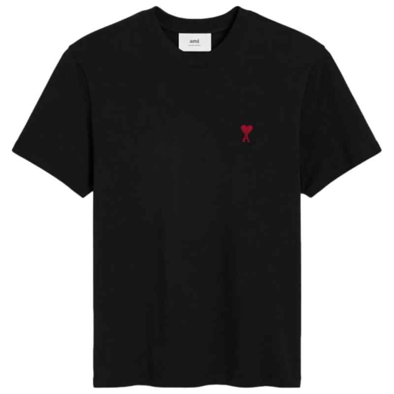 black organic cotton jersey texture signature Ami de Coeur monogram motif crew neck drop shoulder short sleeves straight hem When buying this unisex item, keep in mind that it is graded in standard men’s sizing. Ami De Coeur cotton t-shirt.
