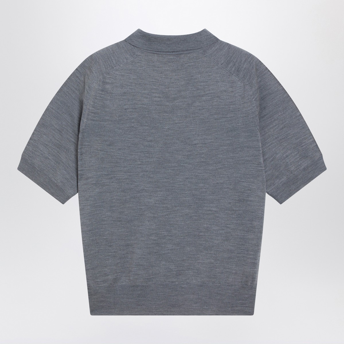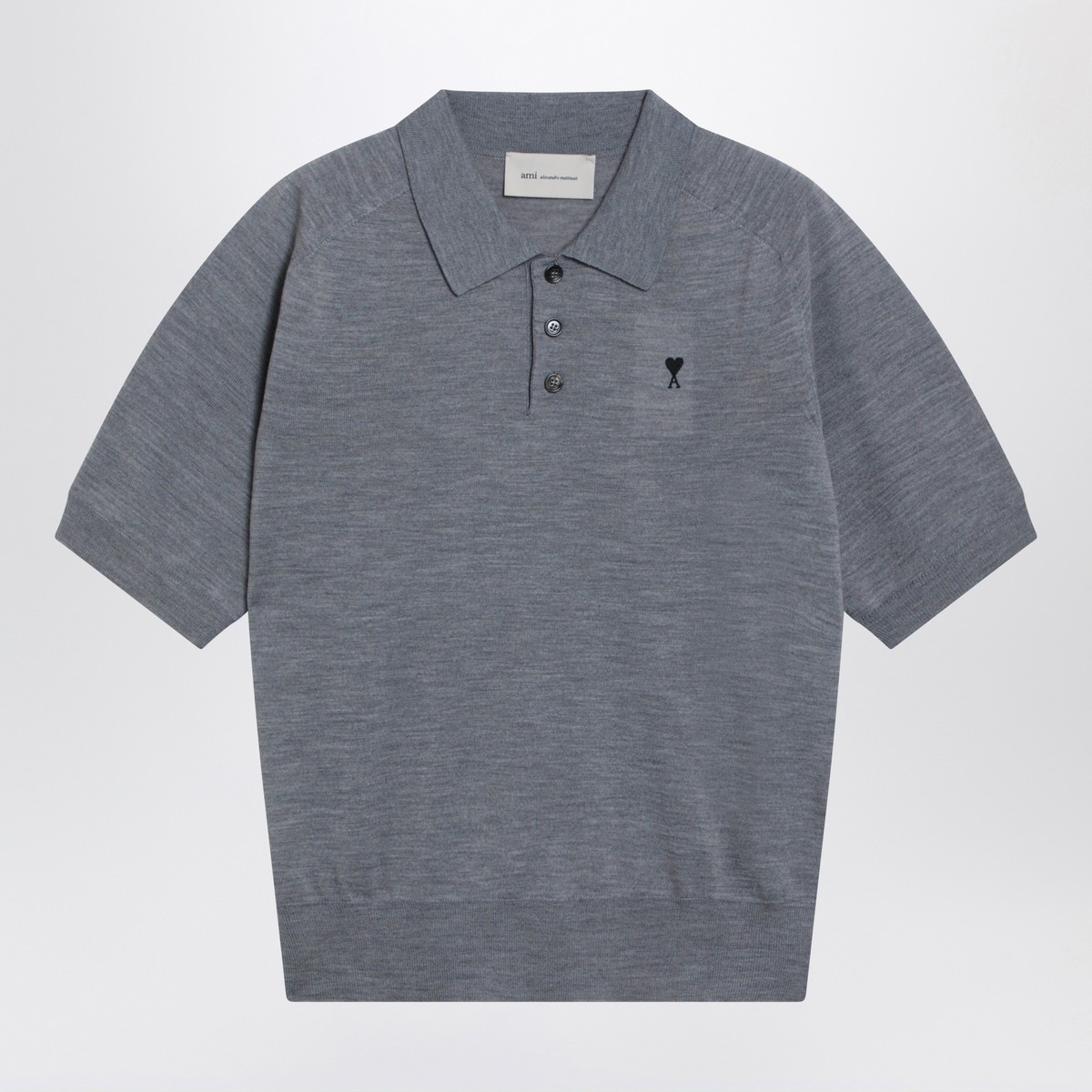 Ami Paris grey wool polo shirt, featuring short sleeves, front buttons, ribbed trims and Ami de Coeur embroidery on the chest.