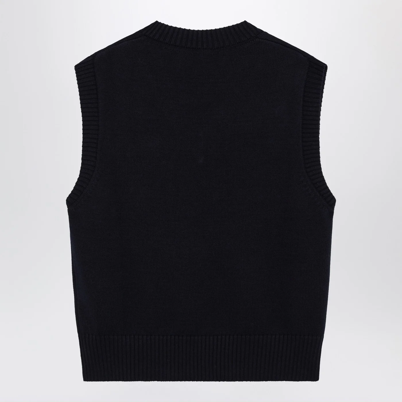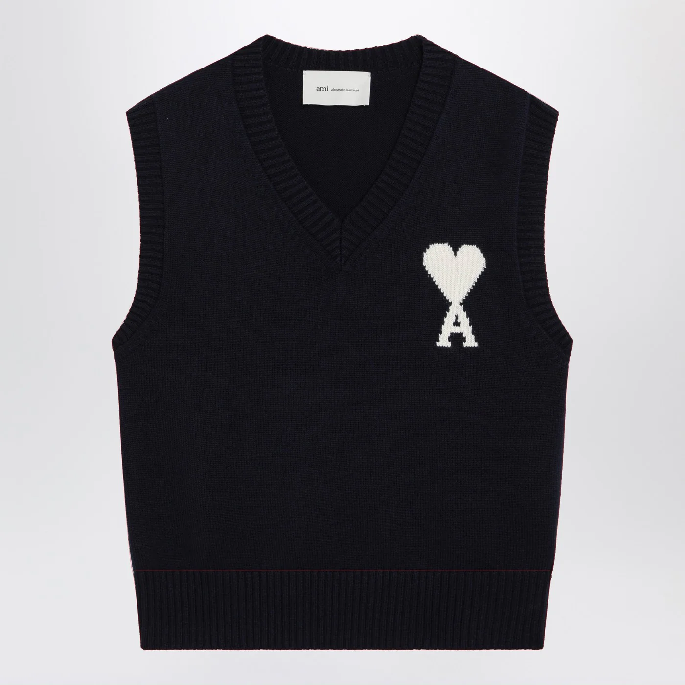 V-neck vest by Ami Paris in virgin wool and cotton blend in ink colour