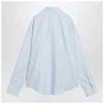 Ami Paris blue cotton shirt, featuring tone-on-tone Ami De Coeur embroidery on the chest, classic collar, front buttoning, long sleeves, buttoned cuffs, and a curved hem.