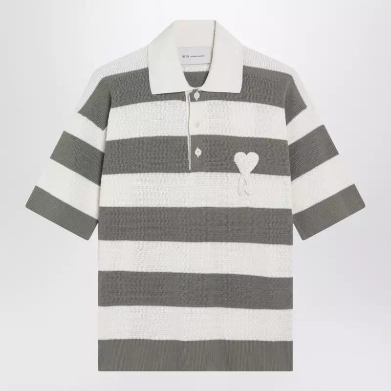 Striped cotton knit polo by Ami Paris