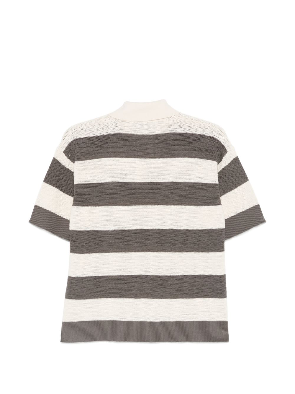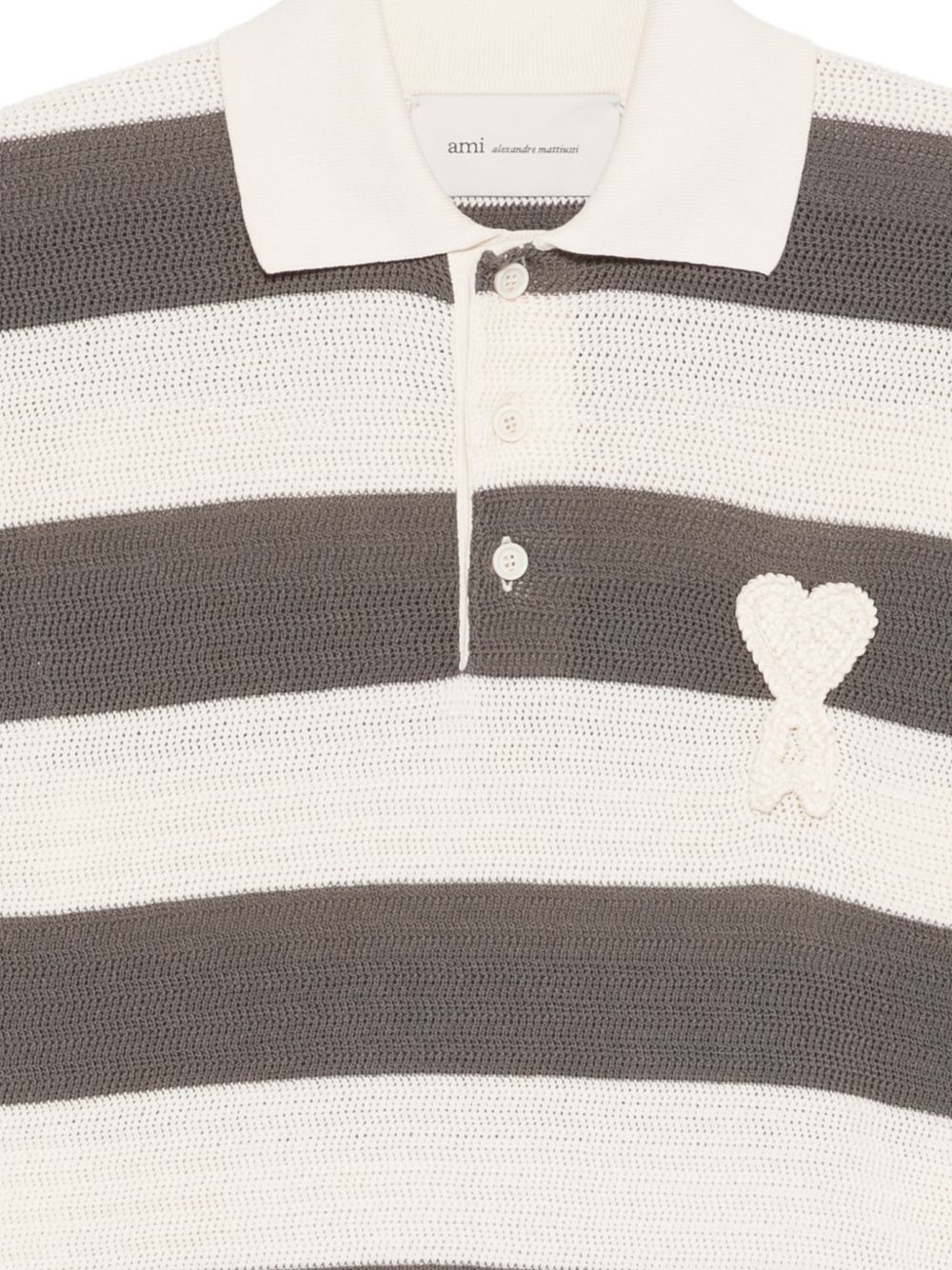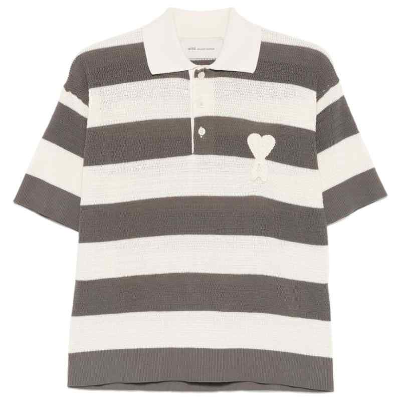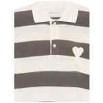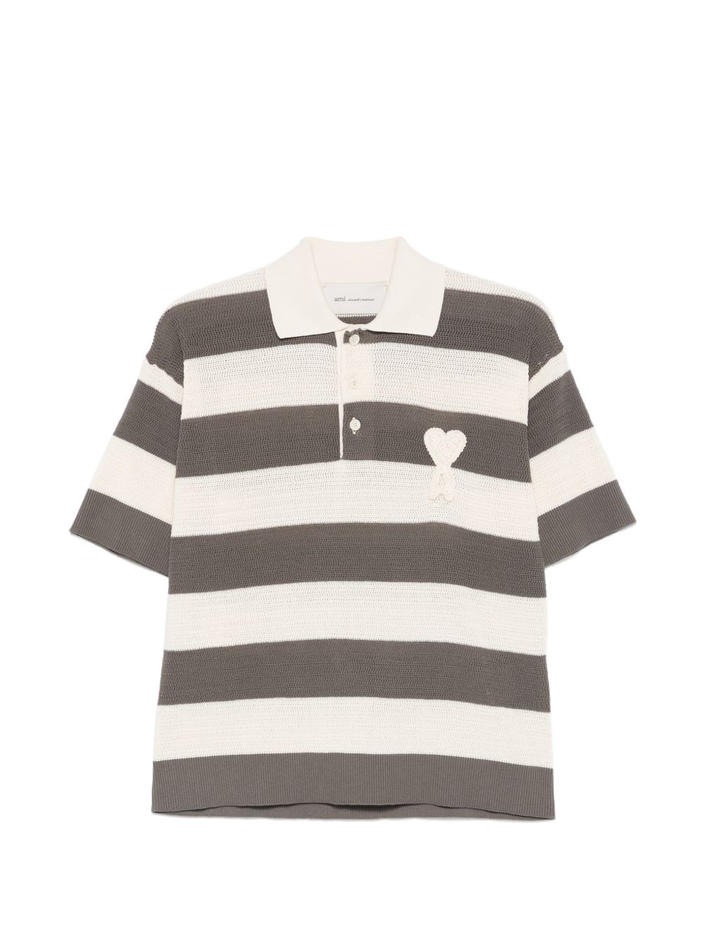 grey striped design heart appliqué button fastening short sleeves classic collar Ami De Coeur striped polo shirt.
