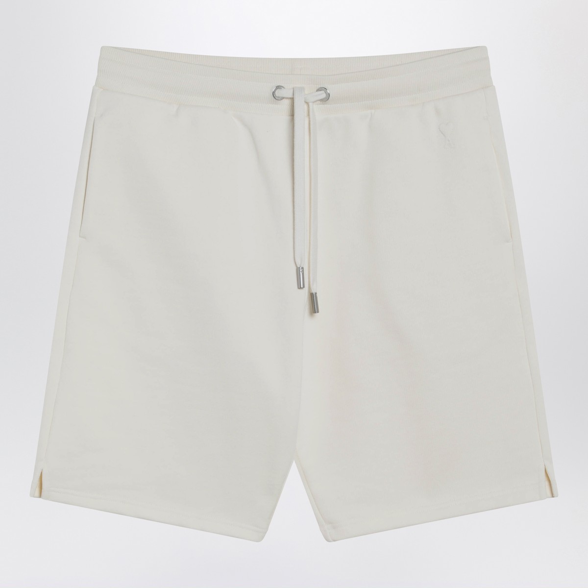 Ami Paris white cotton bermuda shorts, featuring ribbed elasticated waistband with drawstring, two side pockets, one rear patch pocket and Ami de Coeur logo embroidery on the front.