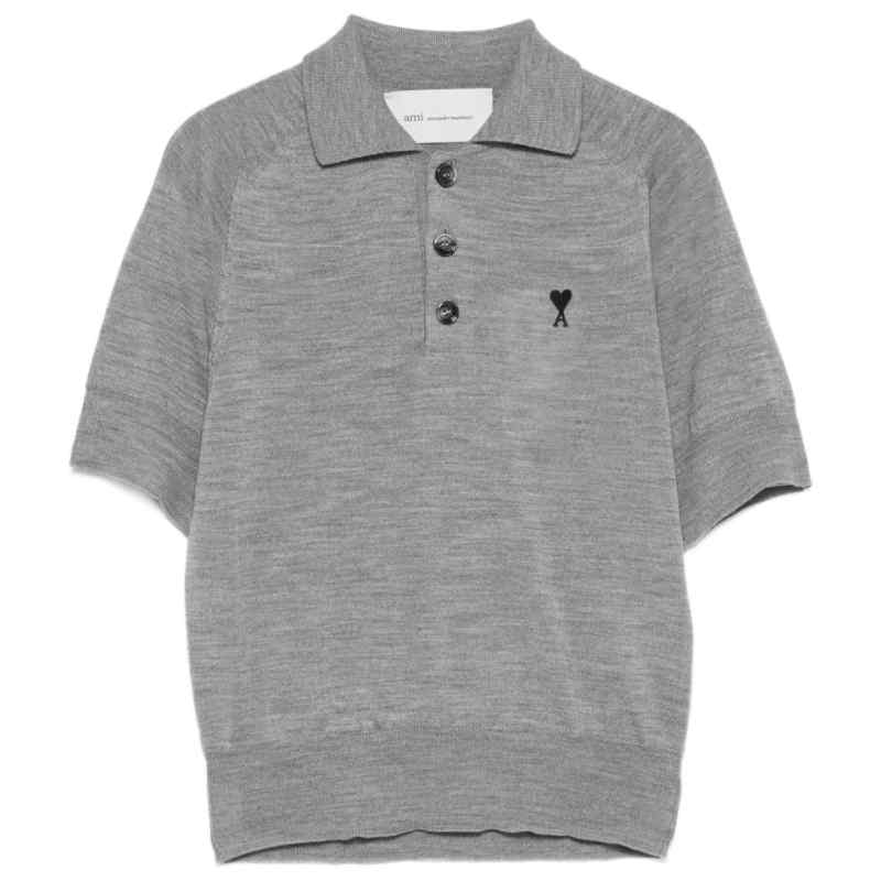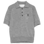 grey logo embroidery button fastening short sleeves ribbed hem Ami De Coeur wool polo shirt.