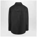Ami Paris anthracite virgin wool shirt, featuring a pointed collar, front button placket, chest pocket, buttoned cuffs, and curved hem.