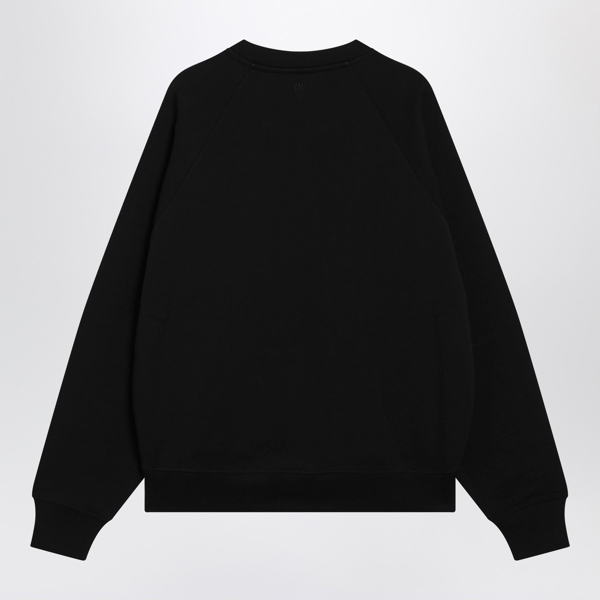 Ami Paris black brushed cotton crew-neck sweatshirt featuring long sleeves, ribbed trims and tone-on-tone Ami de Coeur embroidery on the chest.