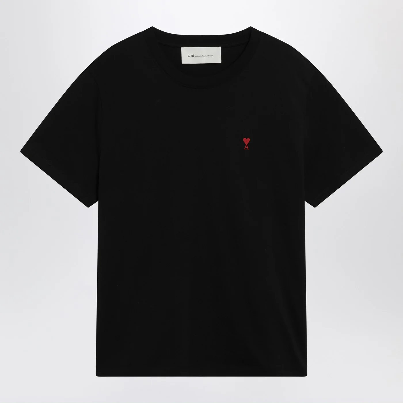 T-shirt by Ami Paris in black cotton featuring short sleeves contrasting Ami de Coeur embroidery on the chest and a ribbed crew neck.