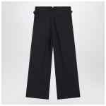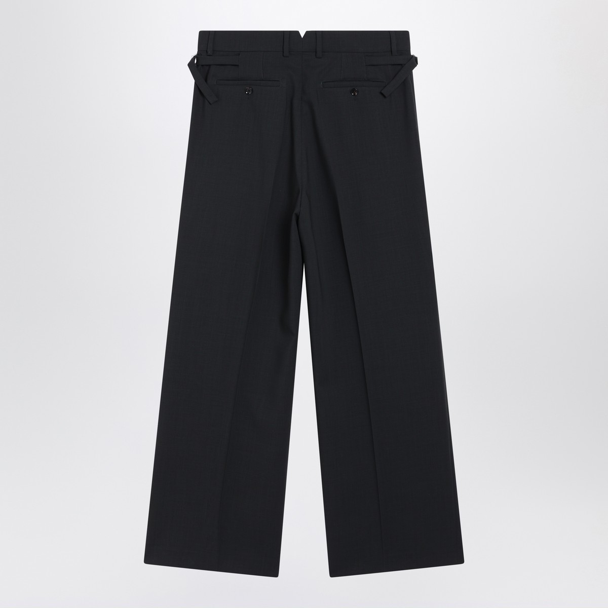 Ami Paris trousers in virgin wool in anthracite grey, characterized by a front closure, belt loops, two side welt pockets, two welt pockets with button at the back, wide leg, pleats at the front, and detail with side straps.